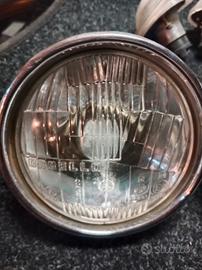 n.2 fanali anteriori fiat 500 f l r originali carello, completi di ghiere in acciaio marchiati Elma, e di lampadine .