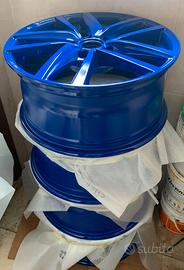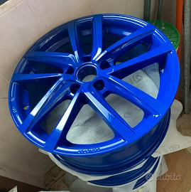 Cerchioni 17” per Volkswagen, marchio Mak, sabbiati e riverniciati a polvere, colore blu, come nuovi.