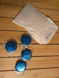 N.4 coprimozzi in plastica da 56mm (sono sostanzialmente i "tappi" che si mettono al centro del cerchione).