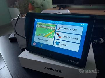 Navigatore AWESAFE con schermo touch. -7 pollici. -Opzioni Camion e Bus. -Include cavi di alimentazione. -Include doppia staffa.