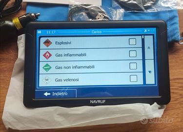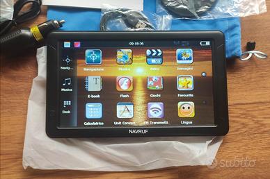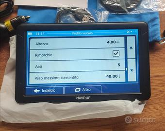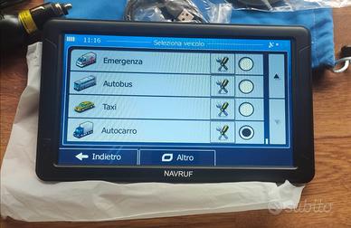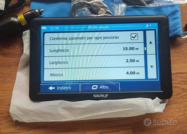 Il Navruf è navigatore GPS pensato per camion, con touchscreen capacitivo da 9 pollici e funzioni avanzate come Bluetooth vivavoce e software di navigazione dedicato a veicoli pesanti come camion, autobus, camper e auto. Permette di configurare parametri essenziali per mezzi di grandi dimensioni, come altezza, larghezza, lunghezza, numero di assi e trasporto ADR (merci pericolose). Esiste anche una versione con schermo da 7 pollici compatibile con tutti i veicoli, configurabile per camion, autobus, camper, auto, moto, taxi e ambulanze. Tra le caratteristiche di sistema troviamo 8 GB di memoria espandibile con microSD, 256 MB di RAM, batteria da 2100 mAh, mappe complete d’Europa aggiornate, display antiriflesso 800x480px, oltre 1 milione di punti di interesse, accesso alle mappe mondiali, uscita cuffie, Bluetooth vivavoce, trasmettitore FM e funzioni multimediali come calcolatrice, giochi e riproduttore di immagini e video. Il software di navigazione offre prof personalizzati per veicoli pesanti e leggeri, impostazioni di dimensioni, peso, carichi e materiali pericolosi, modalità pedonale e auto, ricerche per coordinate, mappa, codici postali e punti di interesse, vista 3D, messaggi vocali in 29 lingue, regolazione e controllo automatico del volume, modalità silenziosa, radar preinstallati in tutta Europa e avvisi vari.