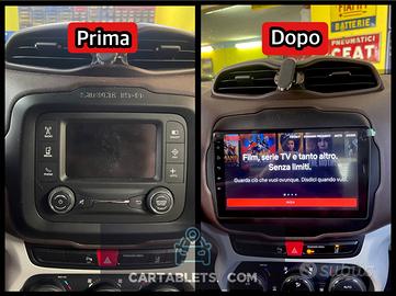 Autoradio nuove specifiche per Jeep Renegade dal 2014 al 2020 con funzione Gps con mappe incluse, Bluetooth radio, supporto completo di eventuali comandi al volante.