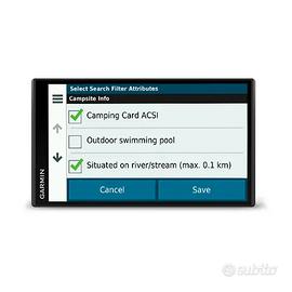 Navigatore Camper 770 LMT-D GARMIN con funzioni di connettività per informazioni LIVE. •Display da 6.95" edge-to-edge •Mappa Europa 46 paesi precaricata con attributi specifici per camper e caravan •Calcolo del percorso personalizzato in base alle dimensioni del veicolo4 •Funzione LiveTrack: invia la tua posizione in tempo reale5 e fatti seguire •Invia le notifiche del navigatore sullo smartwatch Garmin compatibile •Visualizza le notifiche del tuo smartphone sul display6 •Effettua chiamate in vivavoce tramite Bluetooth6 •Sistema di riconoscimento vocale •Avvisi al conducente durante la guida (Drive Alerts) •Database ACSI, MHF e NKC precaricati con migliaia tra campeggi e aree di sosta •Milioni di punti di interesse Trip Advisor® e Foursquare® precaricati •Wi-Fi® integrato per aggiornamenti più veloci, senza l'uso di cavi •GRATIS - Aggiornamenti mappe a vita1 •GRATIS - Aggiornamenti posizioni autovelox2 a vita •GRATIS - Infotraffico DAB incluso per sempre3 •GRATIS - Infotraffico LIVE4 via Smartphone Link con aggiornamenti ogni 60 secondi 1 Termini e condizioni delle mappe a vita. 2 Gli avvisi relativi alle telecamere semaforiche e agli autovelox non sono disponibili in tutte le regioni. 3 Termini e condizioni dell'abbonamento infotraffico a vita. 4 Non disponibile in tutte le aree. L'immissione del profilo del camper non garantisce che le caratteristiche del veicolo siano prese in considerazione per tutti i percorsi suggeriti. Fare sempre riferimento ai cartelli stradali presenti e alle condizioni della strada. 5 Per accedere alle informazioni in tempo reale è necessario scaricare l'app gratuita Smartphone Link. Applicabili, se previste, le tariffe per l'uso dei dati stabilite nel piano dell'utente. Contatta il tuo provider di servizi mobili per ulteriori informazioni sul piano dati del servizio e sui costi di roaming. Richiede uno smartphone Bluetooth. 6 Richiede uno smartphone Bluetooth. Visita la pagina Web Garmin.com/ble.