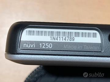 Navigatore per auto Garmin nuvi 1250 completo di custodia, supporto a ventosa per parabrezza, cavo di ricarica da presa accendisigari, cavo di collegamento USB.