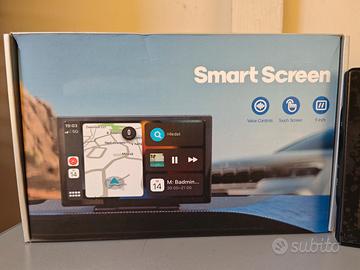 Vendo Smart Screen per auto quasi pari al nuovo. Lo schermo non presenta alcun tipo di imperfezione. Vendo comprensivo di scatola e tutti i pezzi originali al monento dell'acquisto (retrocamera, cavo di alimentazione, sistemi di mantenimento a ventosa che adesivo). Funziona sia con android auto che carplay.