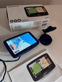 Navigatore Tom Tom Go BASIC, in scatola originale, con istruzioni e cavo USB - Buone condizioni con qualche segno di usura. Il supporto con la ventosa non ha presa
