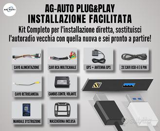 L'installazione avviene con il sistema plug e play AG-AUTO, che assicura un montaggio semplice come la radio originale, anche in autonomia. Tutti i cavi sono separati, etichettati con manuale in italiano.