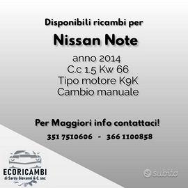 Vendiamo ricambi nissan note anno 2014 cilindrata 1.5 kw 66 tipo motore K9k