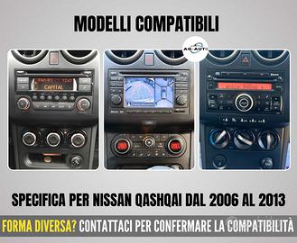 CONTATTI email infoagautoshop@gmail.com Autoradio Android 2 Din specifica per: Nissan Qashqai anno 2006 2007 2008 2009 2010 2011 2012 2013 SITO UFFICIALE DOVE ACQUISTARE: WWW.AG-AUTOSHOP.IT scopri anche le foto del montaggio e recensioni dei nostri clienti SPEDIZIONE IN TUTTA ITALIA, CONSEGNA IN 1/3 GIORNI ✅ COMPATIBILITÀ 100% GARANTITA Affidati a un team di professionisti. Ti contatteremo per fornirti con certezza il kit completo di installazione specifico per il tuo allestimento e anno d'immatricolazione. L'installazione avviene con il sistema plug&play AG-AUTO, che assicura un montaggio semplice come la radio originale, anche in autonomia. Tutti i cavi sono separati, etichettati con manuale in italiano VERSIONI Sconto di 50€ già attivo sui modelli PRO e Ultra (fino ad esaurimento scorte) 🚀 ULTRA 4/64gb 239€ 💎 PRO+ 2/64gb 209€ ✅ PRO 2/32gb 199€ ⚪️ Standard 1/16gb 189€ *Tasti Multicolore e DSP Audio disponibili dalla versione PRO+/ULTRA 🚗 VANTAGGI AG-AUTO 🛡2 anni di garanzia e 14 giorni di reso gratuito 🧾Paga anche in 3/4 rate SENZA INTERESSI con PayPal o Klarna 🆕Nuova versione 2025 con Android 14 📱Android Auto + Apple Carplay integrati per collegare i telefoni (vecchi o nuovi) con cavo o bluetooth 🎛Comandi al volante e informazioni di bordo mantenute 🔒Cavo di alimentazione già collegato sotto chiave per non scaricare la batteria 📥Google Play per scaricare tutte le applicazioni come sul cellulare: Spotify, YouTube ec 🖥Schermo 10 pollici ad alta risoluzione IPS con riflessi ridotti 🛰GPS con antenna inclusa per Mappe Online e Offline (Maps, Waze ec) 🔌2 prese USB + Microfono Integrato + WiFi 🔊HiFi AG-Auto: EQ/DSP + Amplificatore per un audio superiore + Uscite RCA con AUX e Subwoofer 💡Tasi Retroilluminati ✨Logo all’accensione Stereo Touch Radio Touchscreen Navigatore GPS Audio Monitor Display Sistema multimediale