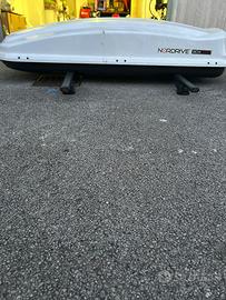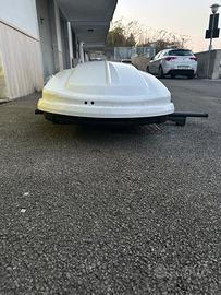 Portapacchi bianco lucido completo di stecche auto, in ottime condizioni, montato in auto soltanto una volta. Nota: Spedizione a carico dell'acquirente