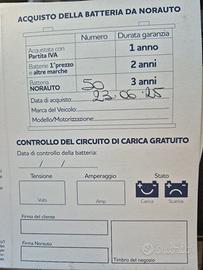 Vendo batteria auto a marchio Norauto, modello 50 Ah (Amperora), acquistata per errore a Giugno 2025 (come da certificato allegato). La batteria è assolutamente nuova, mai installata e in perfette condizioni.