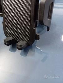 vendo per incompatibilità con la mia auto supporto per telefono con scocca in effetto carbonio . le alette possono essere aperte con l' apposito tasto a poi regolate in base alla grandezza del telefono