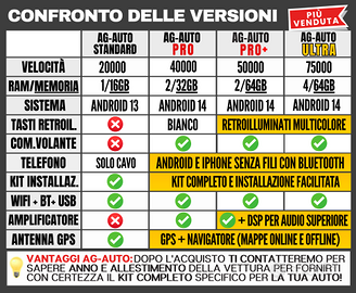 📱Android Auto + Apple Carplay integrati per collegare i telefoni (vecchi o nuovi) con cavo o bluetooth