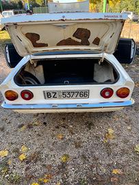 Opel Manta 1200, 1973, ultima revisione nel 2003, da allora è sempre stata ferma. Iscritta ASI. Da restaurare: - il motore gira, la compressione è buona (era stato interamente revisionato prima della revisione nel 2003); - manca il radiatore; - il cruscotto è crepato; - i sedili sono buoni; - è presente ruggine superficiale in vari punti sotto la vernice, ma passante solo sui fondi dietro i passaruota anteriori; - le gomme sono buone (Bridgestone) seppur datate; - i cristalli sono tutti sani.