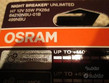 Osram Night Breaker . H7 12V 55W N° 2 Lampadine . Luminosità + 110% . Distanza + 40 metri . Durata + 20% . Vendo Eu 5,90 cad. Spedizione Eu 10,90 Tel. 3477351366
