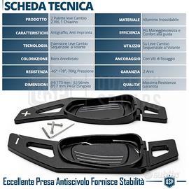 2 Palette Cambio al Volante per Audi con Viti | Alluminio Nero Anodizzato | Estensioni Leve Cambio Sequenziale in Metallo di Qualità, Antigraffio NO IMPRONTA. Professional Line AUTORESTRINGENTI. - Eccellente Presa Antiscivolo Fornisce Sensibilità | Velocizzano il Cambio Marcia - Massime Rifiniture, Anti-Siliconico al Tatto | NO Impronte - Installazione Plug & Play Senza Modifiche | Autorestringenti con Viti - Look Abitacolo Sportivo | F1 Style COMPATIBILITA: (GUARDA FOTO 2) - S3 (8V) 2012-2016 (Pre-Restyling) - RS3 (8V) 2012-2016 (Pre-Restyling) - A4 / S4 (B8) 2011-2015 (Restyling) - RS4 (B8) 2013-2015 (Restyling) - S5 (8T) 2013-2016 (Restyling) - RS5 (8T) 2013-2015 (Restyling) - S6 (C7) 2014-2018 (Restyling) - RS6 (C7) 2014-2018 (Restyling) - RS7 (C7) Sportback 2014-2018 (Restyling) - RSQ3 (8U) 2014-2018 (Restyling) - SQ5 (8R) 2013-2015 (Restyling) MONTAGGIO: - Far Aderire le Palette sulle Attuali leve del Cambio al Volante - Serrare le Viti per Far si che si ancorino Perfettamente alle Palette esistenti. Dettagli Tecnici - IL PACCO INCLUDE: 2 Palette Cambio al Volante - COLORE: Nero Anodizzato - CARATTERISTICA: Antigraffio, Anti-Impronta - TECNOLOGIA: Estensione Leve Cambio al Volante - UTILIZZO: Su Leve Cambio Sequenziale al Volante - EFFICIENZA: Più Maneggevolezza e Comfort di Guida - MONTAGGIO: Viti di Fissaggio - MATERIALE: Alluminio Inossidabile - RESISTENZA: - 45° +78°, 70Kg Pressione - DURATA STIMATA: Massima Resistenza Garantita - INFO AGGIUNTIVE: Prodotto Professionale PER INFO CONTATTARE AL 3927091031 ANCHE LINEA WhatsApp OPPURE VIA E-MAIL: rtautoitalia2018@libero.it CONSEGNA: - Effettuiamo Spedizioni 24-48H in TUTTA ITALIA - Ritiro in Sede con Possibilità di Visionare il Prodotto - Vendiamo solo Articoli Nuovi PAGAMENTI: - PayPal - Con Carta - Bonifico Bancario - Alla Consegna con Contrassegno