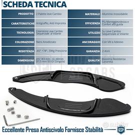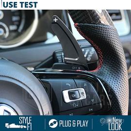 2 Palette Cambio al Volante per Volkswagen con Viti e Adesivo | Alluminio Nero Anodizzato | Estensioni Leve Cambio Sequenziale in Metallo di Qualità, Antigraffio NO IMPRONTA. Professional Line AUTORESTRINGENTI. - Eccellente Presa Antiscivolo Fornisce Sensibilità | Velocizzano il Cambio Marcia - Massime Rifiniture, Anti-Siliconico al Tatto | NO Impronte - Installazione Plug & Play Senza Modifiche | Autorestringenti con Viti e Adesivo - Look Abitacolo Sportivo | F1 Style COMPATIBILITA: (GUARDA Foto 2) - Golf 7 GTI 2013-2020 - Golf 7 GTD 2013-2020 - Golf 7 GTE 2014-2020 - Golf 7 R 2013-2020 - Golf 7 R-Line 2013-2020 - Golf 7 Variant R-Line 2014-2020 - Golf 7 Variant GTD 2015-2021 - Golf 7 Variant R 2015-2020 - Arteon R-Line 2017-2020 (Pre-Restyling) - Passat B8 R-Line 2014-2019 - Polo 5 GTI (6C) 2014-2017 - Polo 5 R-Line (6C) 2014-2017 (Restyling) - Polo 6 GTI 2017-2021 (Pre-Restyling) - Polo 6 R-Line 2017-2021 (Pre-Restyling) - Scirocco 2014-2017 (Restyling) - T-Roc 2017-2022 (Pre-Restyling) - T-Roc R-Line 2018-2022 (Pre-Restyling) - T-Roc Cabrio R-Line 2019-2022 (Pre-Restyling) - Tiguan 2 R-Line 2016-2020 (Pre-Restyling) - Tiguan 2 Allspace R-Line 2017-2022 (Pre-Restyling) - Touran 2 R-Line dal 2016 Dettagli Tecnici - IL PACCO INCLUDE: 2 Palette Cambio al Volante - COLORE: Nero Anodizzato - CARATTERISTICA: Antigraffio, Anti-Impronta - TECNOLOGIA: Estensione Leve Cambio al Volante - UTILIZZO: Su Leve Cambio Sequenziale al Volante - EFFICIENZA: Più Maneggevolezza e Comfort di Guida - MONTAGGIO: Con Bullone - MATERIALE: Alluminio Inossidabile - RESISTENZA: - 45° +78°, 70Kg Pressione - DURATA: Massima Resistenza Garantita - INFO AGGIUNTIVE: Prodotto Professionale PER INFO CONTATTARE AL 3927091031 ANCHE LINEA WhatsApp OPPURE VIA E-MAIL: rtautoitalia2018@libero.it CONSEGNA: - Effettuiamo Spedizioni 24-48H in TUTTA ITALIA - Ritiro in Sede con Possibilità di Visionare il Prodotto PAGAMENTI: - PayPal - Con Cart