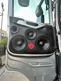 Vendo pannello porta per scania serie S vendo solo i pannelli senza i componenti i pannelli sono fatti in resina da esperto nel settore car audio.sono predisposti per doppio woofer da 25 medio da 20 e tromba.presentano un leggero difetto nel pannello lato guida dove la pelle si e rovinata nell annuncio ho messo la foto.la richiesta e di 850€ trattabili piu pannelli vostri originali.non spedisco solo consegna a mano