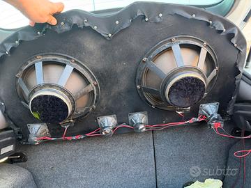 Pannello in legno mdf 2.5 cm 2 woofer full range bicono 32 cm 4 tweeter Tessuto telo acustico come copertura Euro 150 No spedizione Possibile prova prima dell’acquisto No perditempo NON TRATTABILE