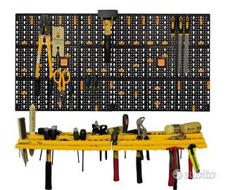 Pannello Forato Portautensili da Parete, Porta Attrezzi Professionale | 2 Pannelli 50cm x 50cm + 2 Mensole 50cm x 20cm + 50 Ganci Assortiti | in Polipropilene, Resistente ad Oli e Solventi Prodotto Ecosostenibile MADE IN ITALY - Robustezza, Resistenza e Durevolezza Garantita - Estetica d' Impatto | Prodotto Professionale - Montaggio Semplice e Veloce - Adatto a tutti i tipi di Attrezzi IL PACCO INCLUDE: - 2 x Pannelli da Parete - 2 x Mensole - 50 x Ganci Assortiti INFO: Qualità, Praticità e Resistenza Fanno di questo Pannello Portautensili uno dei Migliori sul Mercato. E' un Prodotto COMPLETAMENTE MADE IN ITALY. Eccellenza Studiata e comprovata, è Un Prodotto Eco-Sostenibile MADE IN ITALY. PERCHE' SCEGLIERE IL NOSTRO PANNELLO PORTAUTENSILI DA PARETE: Ideale per uso Professionale e non, per Interni ed Esterni, Casa, Giardino e Garage. 1) Capienza e Facilità di Installazione 2) Antimacchia, non Trattiene Umidità e non Assorbe odori 3) Resiste ai Principali solventi e agenti chimici 5) Lavabile e Facile da Pulire, Infatti è un Prodotto Antistatico, quindi Tiene lontano lo sporco e la polvere DETTAGLI TECNICI: - Materiale: Polipropilene - Colore: Nero + Arancione - Finitura: Martellata - Peso: 2,53 Kg - Dimensioni: (L) 100 cm x (H) 50 cm x (P) 20 cm - Resistenza Schiacciamento: 85Kg - Propietà Antiscivolo: Eccellente - Propietà Antimacchia: Eccellente - Classificazione Antistatica: Eccellente - Resistenza agli agenti Chimici: Eccellente - Resistenza Ag. Atmosferici: Eccellente - Termicità: - Ammortizzamento: PER INFO CONTATTARE AL 3927091031 ANCHE LINEA WhatsApp OPPURE VIA E-MAIL: rtautoitalia2018@libero.it CONSEGNA: - Effettuiamo Spedizioni 24-48H in TUTTA ITALIA - Ritiro in Sede con Possibilità di Visionare il Prodotto - Vendiamo solo Articoli Nuovi PAGAMENTI: - PayPal - Con Carta - Bonifico Bancario - Alla Consegna con Contrassegno