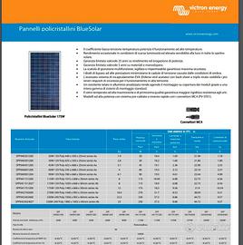 PANNELLO SOLARE NUOVO ancora imballato, acquistato a 140 EUR 6 mesi fa, per progetto camperizzazione non poi utilizzato. I Pannello Solare Fotovoltaico 115W Policristallino produce energia elettrica dal sole ed è utilizzabile per svariate applicazioni in particolare in siti sprovvisti di rete elettrica (off-grid). MODELLO: SPP041151202 DIMENSIONI: 1030 x 668 x 30mm PESO: 8Kg Caratteristiche principali: o Il coefficiente bassa tensione-temperatura potenzia il funzionamento ad alte temperature. o Rendimento eccezionale in condizioni di scarsa luminosità e elevata sensibilità alla luce in tutto lo spettro solare. o Garanzia limitata valevole 25 anni su rendimento ed erogazione di potenza. o Garanzia limitata valevole 5 anni su materiali e esecuzione. o La scatola di giunzione multifunzione, sigillata e impermeabile garantisce massima sicurezza. o I diodi di bypass ad alte prestazioni minimizzano le cadute di tensione causate dalle condizioni di ombra. o L'avanzato sistema di incapsulamento EVA (Etilene-vinil acetato) con back sheet a triplo strato soddisfa i più severi requisiti di sicurezza per il funzionamento in alta tensione. o Un resistente telaio in alluminio anodizzato rende agevole il montaggio su copertura dei moduli grazie a una intera gamma di sistemi di montaggio standard. o Il vetro temperato ad alta trasmissione e di primissima qualità garantisce maggior rigidità e resistenza agli urti. o Sistema precablato a innesto rapido con connettori. Applicazioni: o Alimentazione di mezzi in movimento come Camper, Caravan, Furgoni, Auto, Pulmini, Barche ecc..; o Impianti Solari per Baite, Case di campagna; o Alimentazione di Antifurti, Videosorveglianza, Cancelli Elettrici; o Alimentazione di Ponti radio e Stazione metereologiche; o Alimentazione di Lampade per l'Illuminazione Stradale e Votiva, Insegne pubblicitarie; o Alimentazione di Sistemi di Irrigazione e Pompaggio acque; o Mantenimento batterie per Auto, Moto, Camper, Barca e altro. Certificazioni: o CE o I