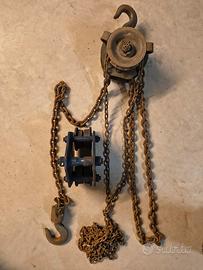 Paranco a catena manuale funzionante ma da lubrificare e revisionare.