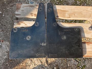paraspruzzi fiat originali dell'epoca no riprodotti, mai montati e in buono stato di conservazione, il materiale si presenta ottimo gommoso e non indurito non crepe, solo 1 ha la scritta FIAT un pò indurita e con qualche crepa, ma ripeto la parte nera è intatta !