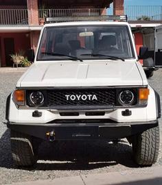 Paraurti anteriori artigianali in acciaio con piegatura a controllo numerico e taglio laser, progettato appositamente per Toyota Land Cruiser lj 70 / kzj 70 lj73 / kzj73, monta sia su modello faro tondo che faro quadro. Parte centrale da 5mm, si fissa ai longheroni del telaio, mentre i profili laterali sono da 3mm. Installazione senza nessuna modifica o adattamento, già predisposto per montaggio verricello senza dover mettere ulteriore piastra. Trattati con fondo zincante e verniciatura a polvere nero antigraffio.