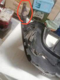 I ganci all estremità rotti e una crepa al centro del paraurti.