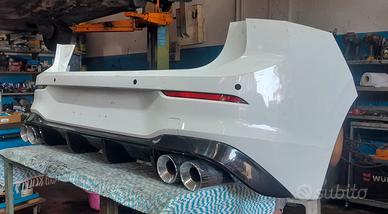 Paraurti posteriore con diffusore e 4 scarichi finti integrati.