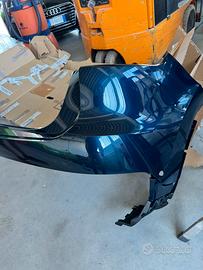 Paraurti nuovo di fabbrica colore blu con fori per sensori parcheggio.