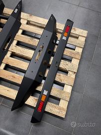 Samurai/SJ STCWORKS in vari modelli, anteriori e posteriori anche custom. Prezzo indicativo variabile a seconda del modello. Disponibili verniciati a polveri o grezzi completi di staffe regolabili e tutta la viteria necessaria per il montaggio. Disponibile anche kit piastra verricello compatibile con tutti i modelli. Disponibili anche pedane dottoporta in diverse versioni. Possibilità di spedizione o ritiro a mano direttamente in azienda.