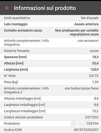 SALVE, VENDO PER ERRATO ACQUISTO PASTICCHE TEXTAR COD. 2317203 PER I SEGUENTI MODELLI RENAULT :