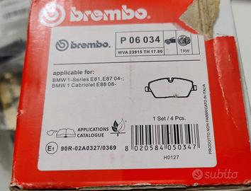 Vendesi pastiglie freni Brembo modello P06034 per Mini e Bmw serie 1 (verificare la compatibilità sul sito del produttore) più sensore di usura a Euro 30 non trattabili. Ritiro a mano.