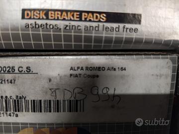 Pastiglie freni nuove, rimanenza di magazzino, per Alfa Romeo 166, Alfa 164, Fiat coupé, Renault 5, Clio, Audi 100 A6 avanti quattro S6 coupé, Fiat idea Stilo e SW , Renault express extra rapid