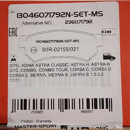 Marca Master Sport. Coppia pastiglie freni anteriori.