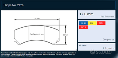 Adatte per pinza freno AP Racing PRO5000R CP9449-CP9450-CP9451 e altre.