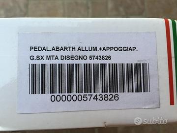 Composta dai 2 pedali Originali Abarth + Poggia Piede Compatibile con tutti i modelli di 500 anche Non Abarth .