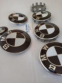 - kit 7 pz emblema / logo bmw Nero / Bianco : ( cofano anteriore + baule , volante , 4 coprimozzo cerchi in lega )