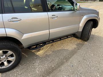 Vendo pedane progettate e realizzato su misura per veicolo Toyota Land Cruiser 120 passo lungo. Struttura tubolare in ferro spessore 3 mm, piastra di ancoraggio al telaio spessore 4mm zincato e verniciato a polveri episodiche colore nero goffrato.