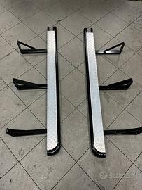 Vendo coppia pedane per Toyota land cruiser j90 realizzate in ferro robusto e verniciato con poggia piede in alluminio mandorlato. Le pedane si fissano al telaio della macchina con perni da 12-14 mm utilizzando fori già esistenti quindi senza fare alcuna modifica.