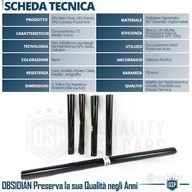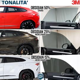 KIT Oscuramento VETRI POSTERIORI Auto con Pellicola Oscurante 3M Serie Premium Professionale OBSIDIAN 15, Grado di Oscuramento 15 MEDIO SCURO | Omologata ABG uso Legale - KIT COMPRENDE 5 PEZZI | 2 Vetri Post.- 2 Eventuali Vetrini Post. - 1 Lunotto Post. (Kit Pretagliato NON Sagomato Ovvero Grandezza +-15% rispetto ai tuoi Vetri) - QUALITA' PREMIUM | Obsidian fa parte della Gamma Professionale di Alto Livello 3M (Non è da confondere con Black Shade, Gamma Economica Non Professionale) - OMOLOGATA ABG | Omologazione Stampigliata, Disponibili Documenti di Omologazione dell'ufficio Federale Tedesco (KBA Kraftfahrt Bundesamt) - OSCURAMENTO 15 | Scuro, Trasmette il 16% di Luce Visibile, Rappresenta il Binomio Perfetto Fra Estetica Sportiva e Utilità in Termini di Comfort e Protezione - GARANZIA 10 ANNI | Garanzia Produttore 3M 5 anni + 5 Estesa dal Fornitore COMPATIBILITÀ: - Vetri Finestrini Posteriori - Vetrini Posteriori - Vetro Lunotto Posteriore DETTAGLI TECNICI: - N° Pezzi: 5 - Omologazione: ABG - Dimensioni: +/-15% in più Rispetto alla Grandezza dei tuoi Vetri Auto - Materiale: Poliestere Pigmentato 100 Micron - Grado di Oscuramento: 15 – Medio Scuro - Colore: Nero - Non Metallizzato - Rivestimento Antigraffio: Si - PET Siliconato, Termoforabile - Priva di Metalli: Si - Protezione Raggi UV: 99,9% - SPF 1.000 - Interferenza Segnali GPS Satellitare, Cellulari: 0% - Surriscaldamento Abitacolo: -50% - Luce Visibile Riflessa Interno: 5% - Luce Visibile Riflessa Esterno: 5% - Luce Visibile Trasmissione: 16% - Tot Energia Solare Respinta: 57% - Blocco UV: 99,9% - Riduzione Guadagno Termico: 25,86% - Riduzione Abbaglio: 79% - Temperatura di lavoro Compresa tra - 40°C / +70°C - Spessore: 100 Micron PER INFO CONTATTARE AL 3927091031 ANCHE LINEA WhatsApp OPPURE VIA E-MAIL: rtautoitalia2018@libero.it CONSEGNA: - Effettuiamo Spedizioni 24-48H in TUTTA ITALIA - Ritiro in Sede PAGAMENTI: - PayPal - Con Carta - Bonifico Bancar