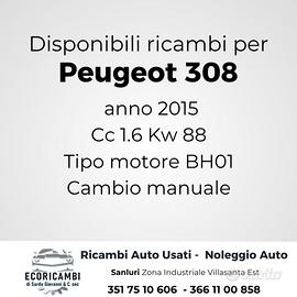 vendiamo ricambi Peugeot 308 anno 2015 cilindrata 1.6 kW 88 tipo motore BH01 cambio manuale
