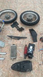 Vendo vari pezzi smembrati derivanti da YAMAHA DT50cc 2004. Vendo tutti i pezzi presenti in foto. Per i info scrivetemi in privato. Telaio principale bisogna fare passaggio di proprietà. Tutto in buono stato. -Cerchi enduro gommati: 150€ -Forcelle oroginali: 90€ -Piastre: 50€ -Telaietto: 80€ -Forcellone:120€ -Telaio:175€ -Radiatore destro originale:45€ -Porta catena: 15€ -Serbatoio: 60€ -Paraspruzzi:15€ -Para radiatori:15€ -Ammortizzatore: 20€ -Porta batteria:15€