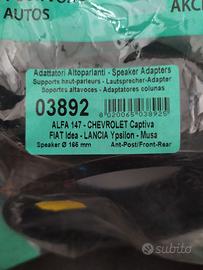 Vendo coppia di adattatori Phonocar modello 03-892 idonei per installare altoparlanti da 16cm nelle predisposizioni originali delle auto gruppo Fiat, in particolare Fiat Idea, Lancia Y e Musa, Alfa Romeo 147, sia anteriore che posteriore. Articolo nuovo ed ancora sigillato