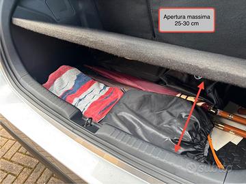 Il pianale consente di avere, oltre ad una soglia di carico più alta, un piccolo doppiofondo di circa 10-12 cm in cui riporre/nascondere oggetti (borse della spesa, booster 12v, pompa pneumatici…)