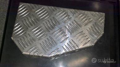 Specifica per DEFENDER Td4/Td5 (tutti modelli) nuova, piastra in alluminio mandorlato, per rivestimento predellino posteriore. Tagliata su misura a laser e piegata (possibilità di verniciarla) sostituisce il rivestimento originale in gomma. Molto robusta, per effetto del mandorlato risulta ANTISCIVOLO. Facile da montare.