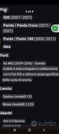 Ruota di scorta Pirelli con kit di montaggio, mai usata, tenuta come nuova, senza segni di usura, praticamente nuova. Fiat Punto 2001-2008 Misura 135/80 B 14 Può essere consegnato a mano nelle zone ciampino marino cinecitta.. è disponibile vicino a McDonald's tramite Appia nuova.. e il prezzo è leggermente negoziabile. I modelli adatti sono indicati nell'immagine.