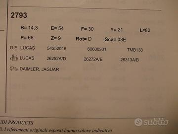 Per Jaguar E,420 Berlina e XJ6,vendo pignone per motorini di avviamento Lucas,tipo:26252A/D,26272A/E e 26313A/B.Ricambio nuovo,marca "Ghibaudi".