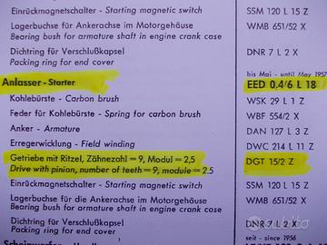 Per Porsche 356 e 356 A,vedi elenco dei modelli nelle ultime immagini,vendo pignone per motorini di avviamento "Bosch" EED 0,4/6 L 18.Adatto anche a Volkswagen Maggiolino anni 50,("Ovalino") com motorino di avviamento "Bosch" EED 0,4/6 L 4.